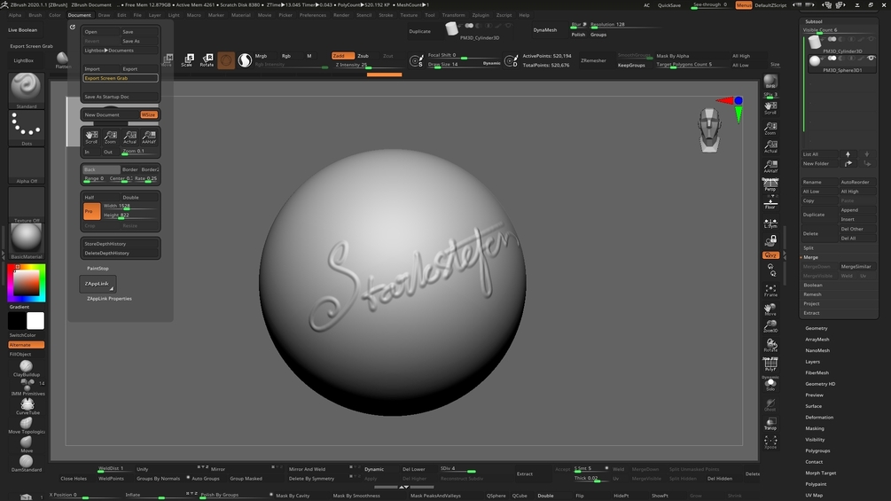 Starkstefen 3d User interface Zbrush 2020
